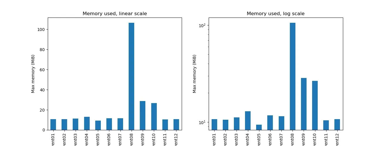 Here are charts for the time and memory use.